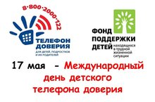 17 мая 2016 года, в Международный день детского телефона доверия, фонд поддержки детей проводит общероссийский марафон"Скажи о чем молчишь". В течеение нескольких часов будет вестись трансляция из московской студии, где будут сменять друг друга представители Фонда поддержки детей, психологи, популярные среди подростков артисты, музыканты и спортсмены. У желающих будет возможность получить психологическую помощь в ситуации стресса из-зи экзамена, конфликта со сверстниками или родителями, неразделенной любви. Авторы лучших вопросов получат призы, подарки с символикой детского телефона доверияи и сувунирыс автографами "звезд".
