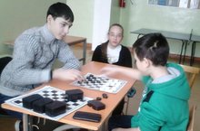 Дух соперничества царит не только на уроках,но и на переменах.Ученики не только отдыхают,готовятся к следующему уроку,но и состязаются в шашках.