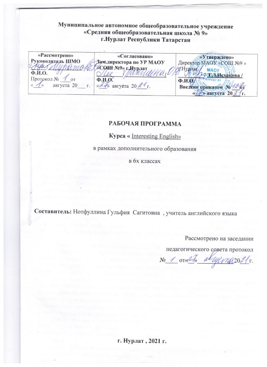 Муниципальное автономное общеобразовательное учреждение «Средняя общеобразовательная школа №9" г. Нурлат Республики Татарстан/Татарстан Республикасы Нурлат шәһәре «9 нчы урта гомуми белем мәктәбе» муниципаль автоном гомуми белем учреждениесе