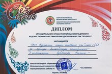 Победа творческих коллективов "Улыбка" и "Танцевальная капель" в номинациях "Народный вокальный ансамбль" и "Хореография" в муниципальном этапе Республиканского детского художественного фестиваля народного творчества "Без бергә" 15.03.2019