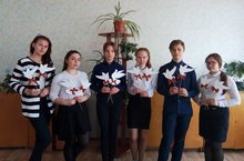 Учащиеся нашей школы приняли участие в акции "Голубь мира" и совместными усилиями сделали прекрасных голубей не только для района, но и для своих жителей села, чтобы подарить их на 9 мая.