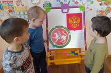 7 февраля, день герба Республики Татарстан. В разновозрастной группе детского сада была проведена беседа и показана презентация о принятии герба, его истории, рассказано о нашей республике, представлены книги о достопримечательностях. Затем дети раскрасили герб в его основные цвета.