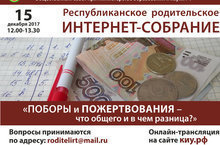 Республиканское родительское интернет-собрание "Поборы и пожертвования что общего и в чем разница?" 15 декабря 12.00-13:00 ч. Онлайн трансляция на сайте КИУ.РФ
