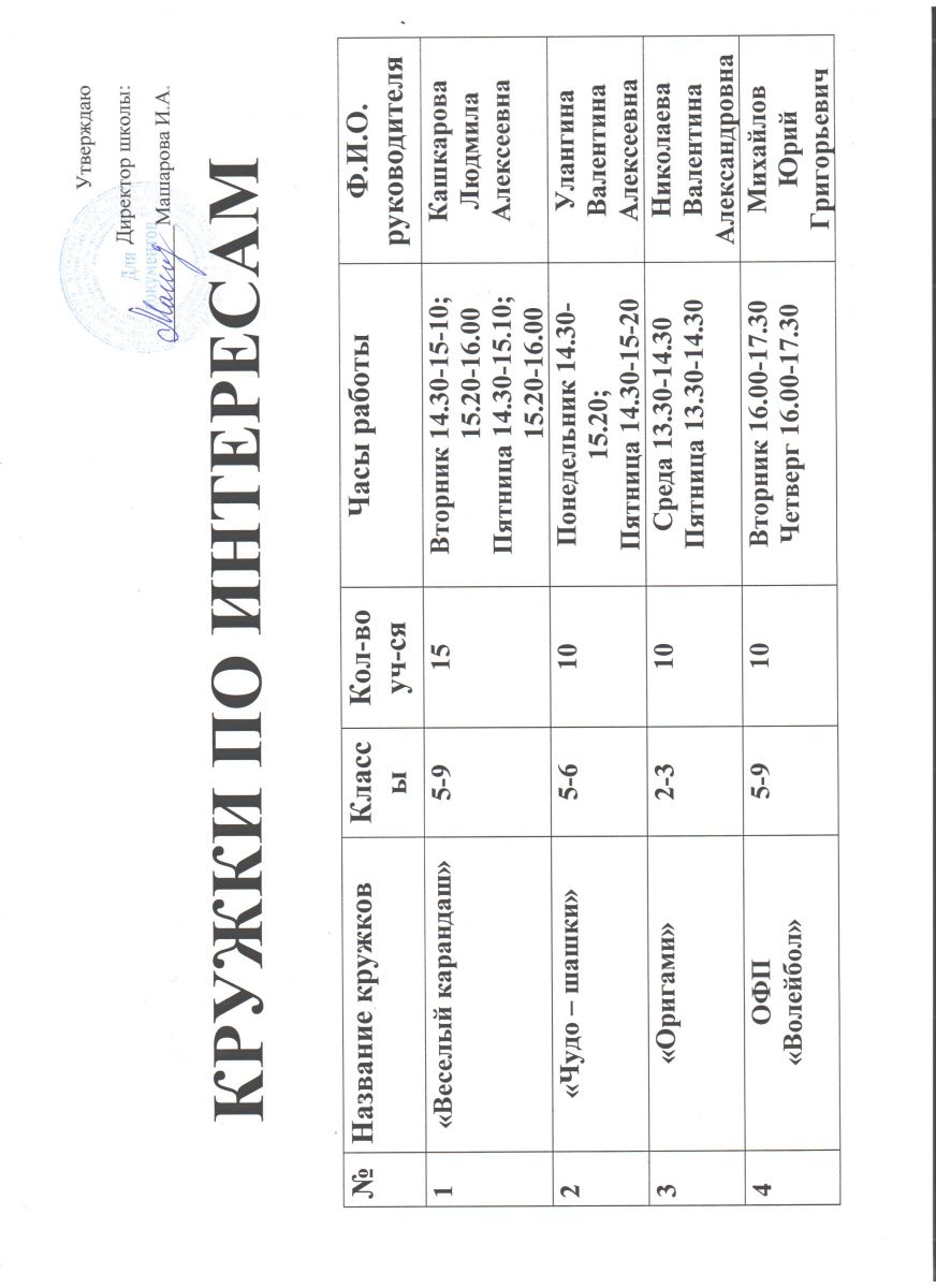 Список кружков 2015-2016/2015-2016 уку елына түгәрәкләр исемлеге