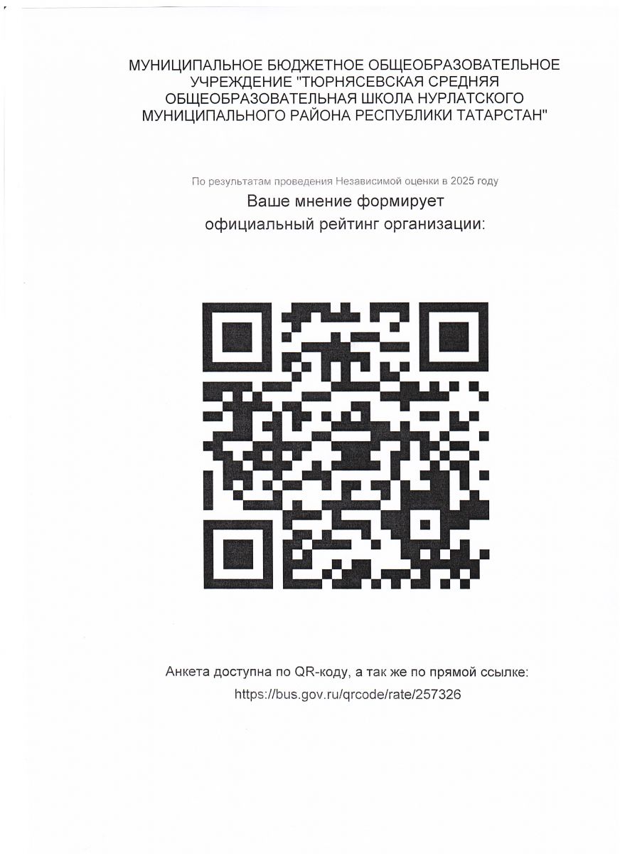 Муниципальное бюджетное общеобразовательное учреждение "Тюрнясевская средняя общеобразовательная школа Нурлатского муниципального района Республики Татарстан" / Татарстан Республикасы Нурлат муниципаль районы "Төрнәче урта гомуми белем мәктәбе" муниципаль бюджет гомуми белем учреждениесе