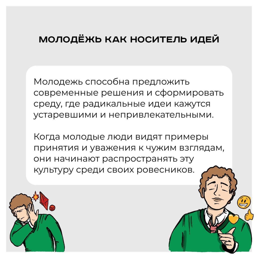 Доверие молодежи , Роль молодежи в формировании среды , Молодежь как носитель идей , Подростки против экстремизма