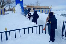 В ходе акции они почистили от снега территорию памятника, павшим воинам ВОВ. -