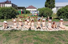 Вместе весело играем, отдыхаем, загораем – именно под таким лозунгом прошел сегодня день в нашем детском саду. Закаливание детей дошкольного возраста в ДОУ состоит из системы мероприятий, включающих элементы закаливания в повседневной жизни, которые включены в режимные моменты и специальные мероприятия: воздушные ванны, солнечные ванны, водные процедуры, правильно организованную прогулку, являются частью физкультурных занятий. // Бергә уйныйбыз, ял итәбез, кызынабыз – бүген безнең балалар бакчасында көн нәкъ менә шундый лозунг астында үтте. Мәктәпкәчә яшьтәге балаларны чыныктыру көндәлек тормышта үз эченә алган чаралар системасыннан тора, алар режимлы мизгелләргә һәм махсус чараларга: һава ванналары, кояш ванналары, су процедуралары, дөрес оештырылган йөрү, физкультура дәресләренең бер өлеше булып тора.
