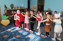 В нашем детском саду было проведено мероприятие в рамках кружковой работы «Растем, играя в театр». Дети старшей группы инсценировали сказку «Репка» на татарском языке. Зрителями были младшие группы. Каждый маленький артист, исполняя свою роль, испытывал чувство радости и ответственности. Через театрализацию у детей не только закрепляется активный и пассивный словарный запас, но и способствует развитию творческой личности. // Безнең балалар бакчасында «Театрда уйнап үсәбез» дигән түгәрәк эше кысаларында чара үткәрелде. Өлкән төркем балалары «Шалкан» әкиятен татар телендә сәхнәләштерделәр. Тамашачылар кече төркемнәр иде. Һәр кечкенә артист, үз ролен башкарып, шатлык һәм җаваплылык хисе кичерде. Театральләштерелгән тамаша аша балаларда актив һәм пассив сүзлек запасы гына ныгытып калмыйча, иҗади шәхесне үстерүгә дә ярдәм итә.