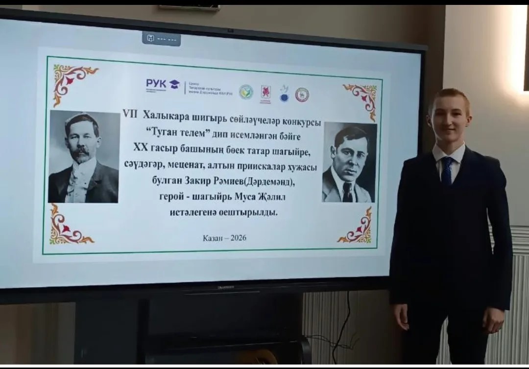 8 енче сыйныф укучысы Гәйнетдинов Риназ "Туган телем"дип исемләнгән VII Халыкара шигырь сойләүчеләр конкурсында катнашып 2 нче дәрәҗәдәге дипломга лаек булды. «Туган телем» Халыкара шигырь сөйләүчеләр конкурсы татар телен, әдәбиятын саклау һәм популярлаштыру максатыннан оештырыла.