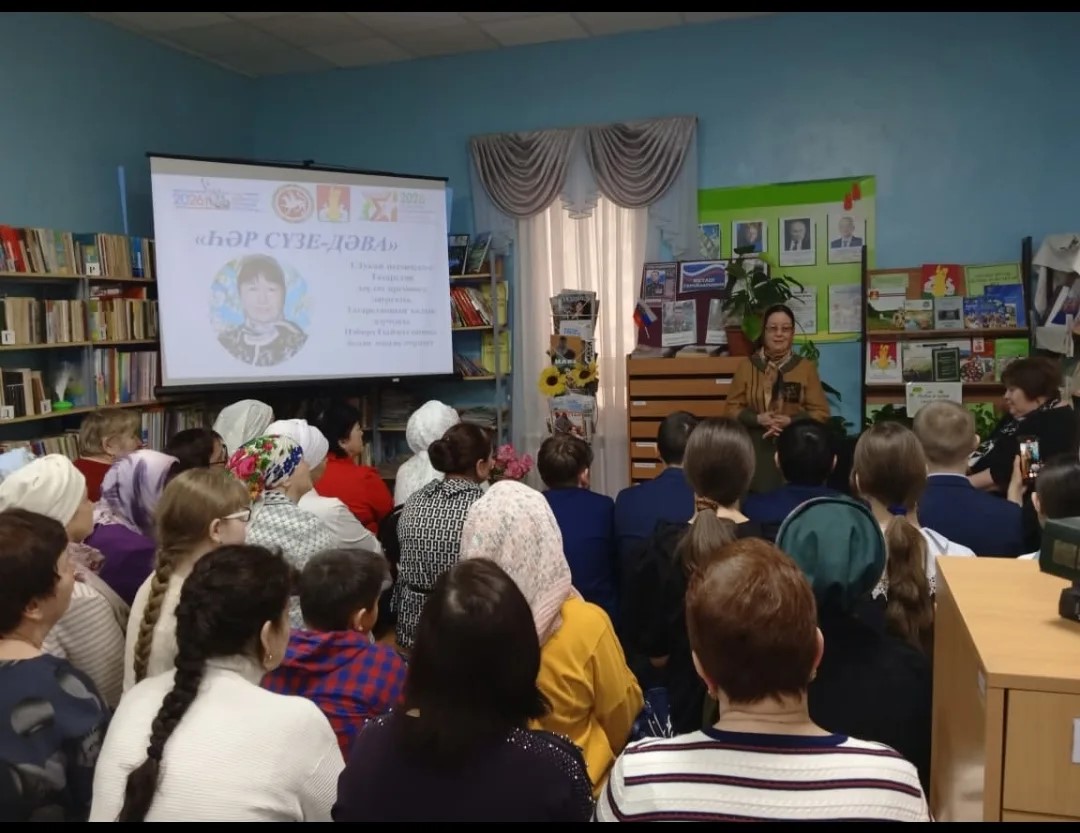 Сегодня в нашей сельской библиотеке состоялось замечательное событие. К нам в гости пришла народная писательница Татарстана, лауреат премии Г.Тукая Набира Гиматдинова. Встреча была организована заранее продуманной, прочной подготовкой, и она, безусловно, оставила глубокий след в наших сердцах. Зал библиотеки был заполнен учениками - взрослыми, собравшимися на встречу с одним из лучших писателей народа.