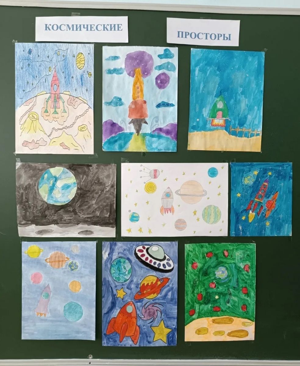 Конкурс рисунков на тему "Космические просторы" в рамках недели Космонавтики среди учащихся 1-7 классов.
