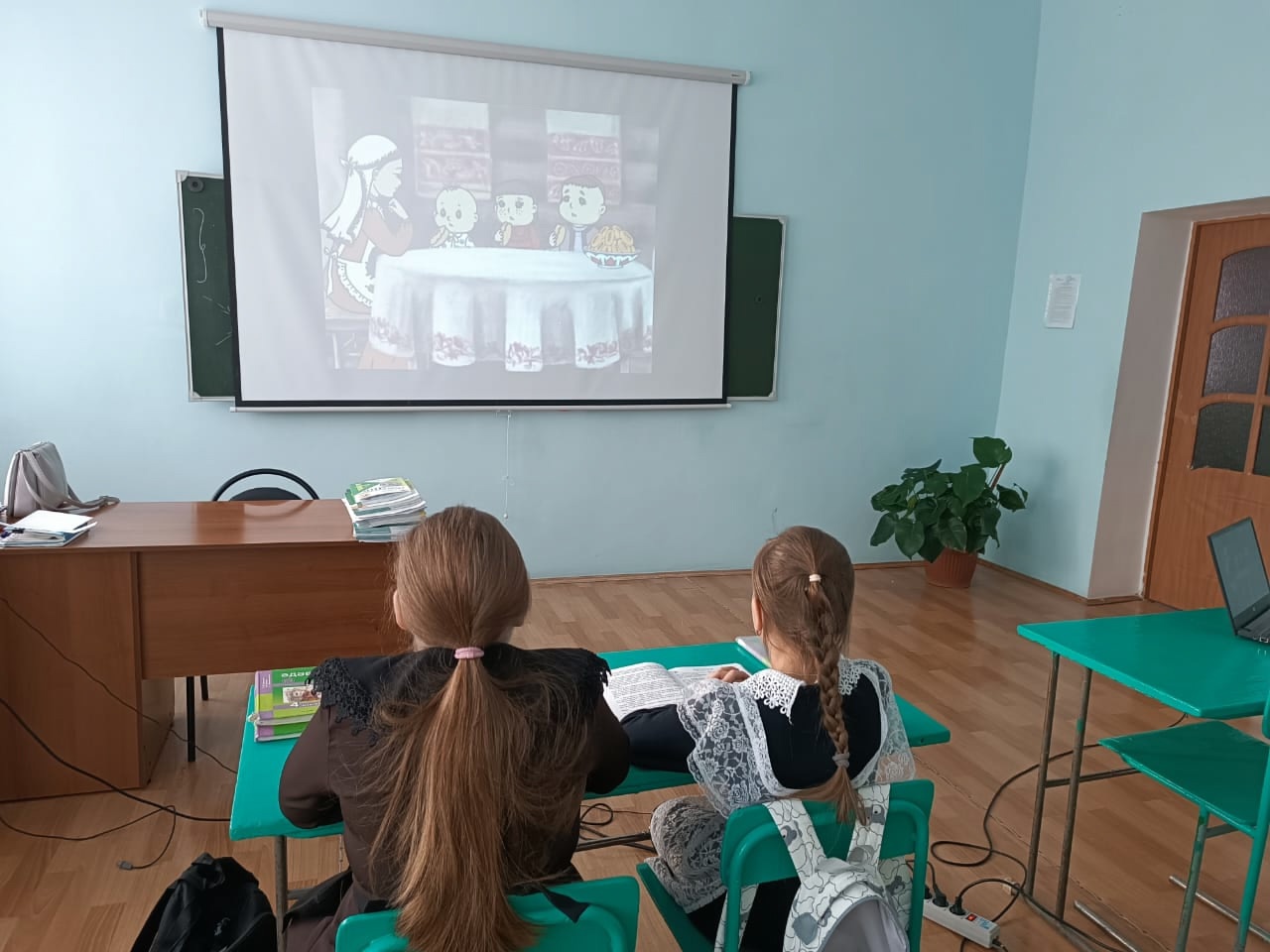 Просмотр мультфильмов по произведениям Г.Тукая в младших классах в рамках проведения Дня родного языка.