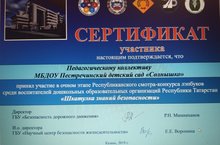 МБДОУ №3 Солнышко принял участие в очном этапе Республиканского смотра-конкурса лэпбуков среди воспитателей дошкольных образовательных организаций Республики Татарстан «Шкатулка знаний безопасности»СЕРТИФИКАТ -