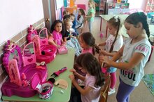 В настоящее время в России значительное внимание уделяется вопросам ранней профориентации воспитанников. Дошкольный возраст – начальный этап первичной профессионализации, профессионального становления человека, в этом возрасте обращение к миру профессий требует особых технологий и может рассматриваться как этап ранней профориентации. Организацию первичной профессионализации целесообразно реализовывать посредством погружения ребенка в разнообразный мир профессий, создавая тем самым модель ближайшего профессионального окружения дошкольника, в которой он учится выстраивать социальные связи и отношения и приобретает первичный опыт различных видов труда. Раннее начало подготовки ребенка к выбору будущей профессии заключается не в навязывании ребенку того, кем, по мнению взрослых, он должен стать, а в том, чтобы познакомить ребенка с различными видами труда и группами профессий.Сегодня в старшей группе прошло мероприятие на тему "День парикмахера". Дети закрепили представление о труде парикмахера, правила поведения в общественных местах. Отгадывали загадки, играли в викторину, в сюжетно-ролевой игре применяли полученные знания. У детей формируются дружеские отношения и уважением к труду парикмахера. В старшей группе прошло мероприятие на тему "День парикмахера". Дети закрепили представление о труде парикмахера, правила поведения в общественных местах. Отгадывали загадки, играли в викторину, в сюжетно-ролевой игре применяли полученные знания. У детей формируются дружеские отношения и уважением к труду парикмахера.