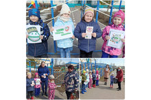 Прозвучали Гимн «Эколят» и песни о природе дети раздавали родителям памятки: "Помогите природе выжить", "Как сохранить живые цепочки", "Как охранять птиц", "Как долго разлагается мусор".