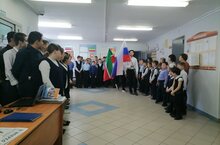 Линейка 28.04.2023 Вынос флага и исполнение гимна РФ и РТ.