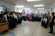 Линейка 17.10.2022 Новая учебная неделя началась в школе с вноса флага и исполнения гимна РФ и РТ.