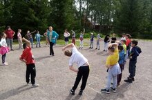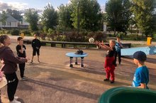 Учащиеся старших классов разучились с ребятами на детских площадках игры в мяч -