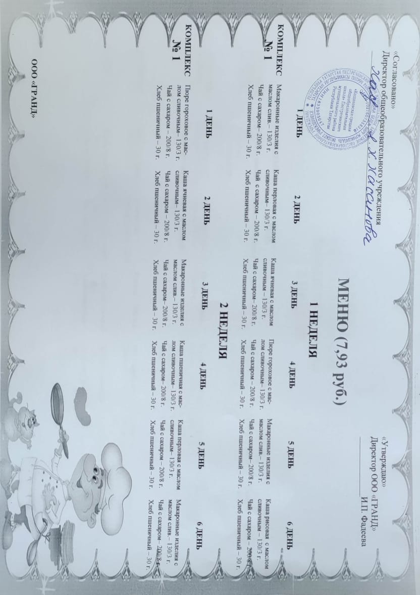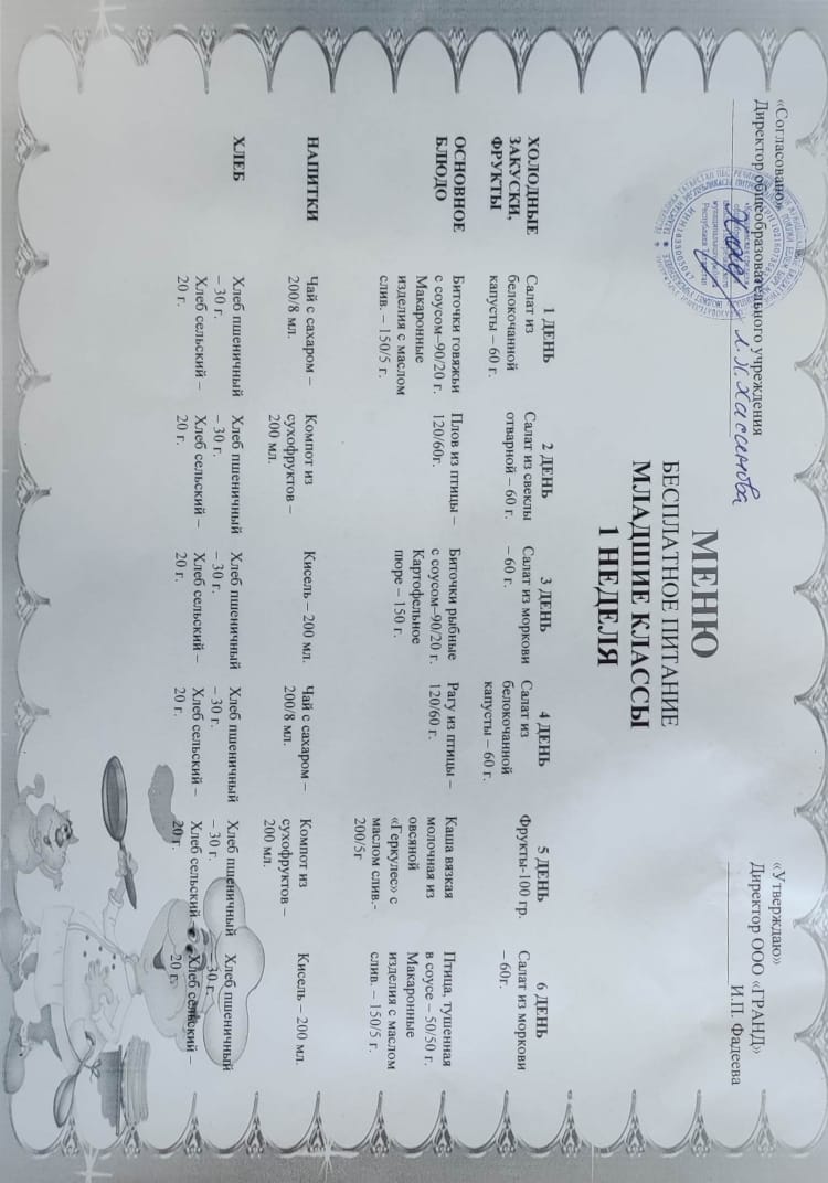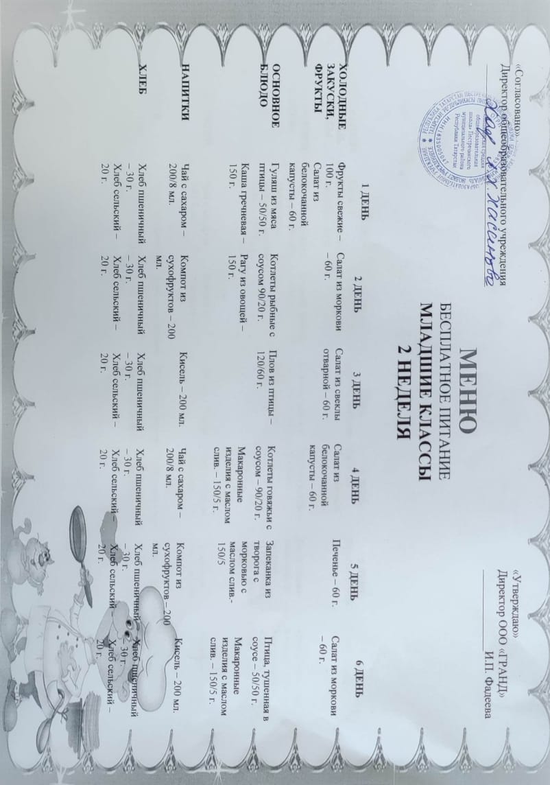 Меню 1-4 классы