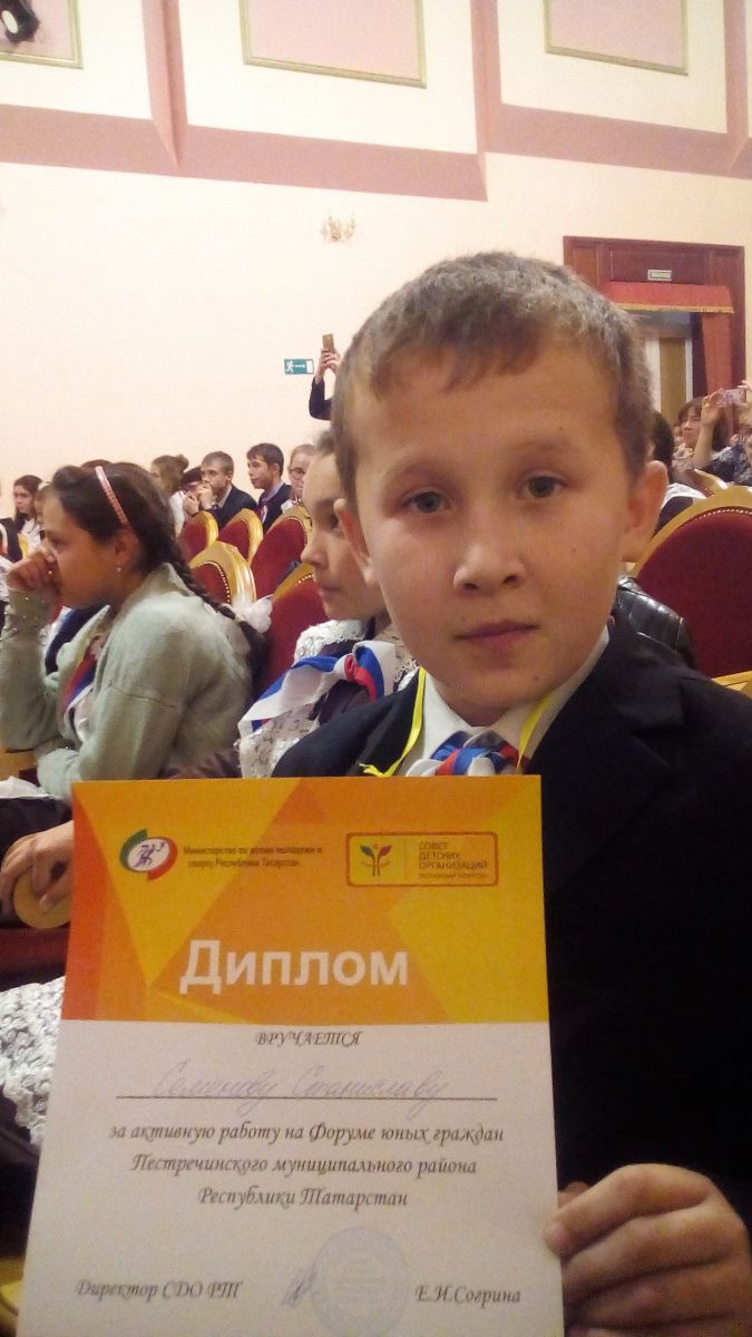Опубликовано: 28.09.2017Әлеге форум делегациясе составында 5 нче класстан Семенов Станислав, 6 нчы класстан Мухина Регина, 7 нче класстан Ермолаева Оксана һәм Морозова Марина, 8 нче сыйныфтан Ермолаева Мария иде. Аларның барысына да "Катнашучы сертификаты" тапшырылды. Ә Семенов Станислав, "Татарстан Республикасы Питрәч муниципаль районы яшь гражданнары Форумы"нда актив катнашканы өчен," Диплом белән бүләкләнде. Форумнан балалар күтәренке рух белән, куп кенә яңалыклар алып, шәхес буларак ныгып кайтты.