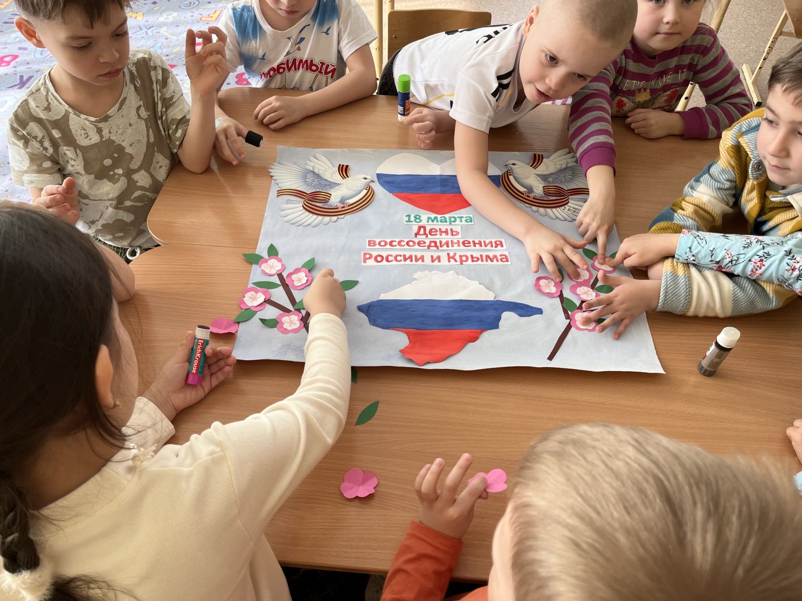 Ребята узнали об историческом прошлом Крымского полуострова, о народах, проживающих в Крыму в настоящее время, об их культурном наследии. Дети с удовольствием сделали коллективные работы и тематические плакаты.