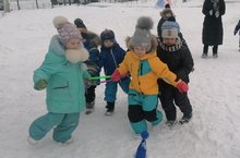 Прогулка в детском саду зимой не только прекрасное время для развлечений на открытом воздухе, но и замечательный способ оздоровления. Во время прогулки дети получают заряд бодрости и хорошее настроение, к тому же совместная деятельность развивает социальные навыки и воспитывает дружелюбие, чувство ответственности.//Кышын балалар бакчасында йөрү ачык һавада күңел ачу өчен менә дигән вакыт кына түгел, сәламәтләндерүнең искиткеч ысулы да. Йөрү вакытында балалар күтәренке кәеф һәм күтәренке кәеф алалар, шуның өстенә бергәләп эшчәнлек социаль күнекмәләр дә үстерә, дустанә мөнәсәбәт, җаваплылык хисе тәрбияли.