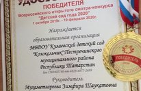 МБДОУ Кулаевский детский сад "Колокольчик" удостоен наградой победителя Всероссийского открытого смотр-конкурса "Детский сад года 2020"// Колай "Кыңгырау" балалар бакчасы "Ел балалар бакчасы-2020" Бөтенроссия ачык смотр-конкурсында җиңүче исемен яулады.