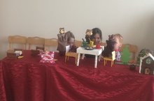 Тәрбиячеләр белән берлектә балалар рус халык әкияте мотивлары буенча "Өч аю"курчак театры әзерләделәр:үз куллары белән геройлар,атрибутлар,мебель һәм савыт-саба ясадылар. Балаларга әкият геройларында үз-үзеңне тоту бик ошады.Алар һәр геройның интонациясен,хис-тойгыларын җиткерә алдылар. Тамашачылар,кече төркем балалары бик канәгать калдылар, әкият геройларын көчле алкышлар белән каршы алдылар һәм озаттылар.