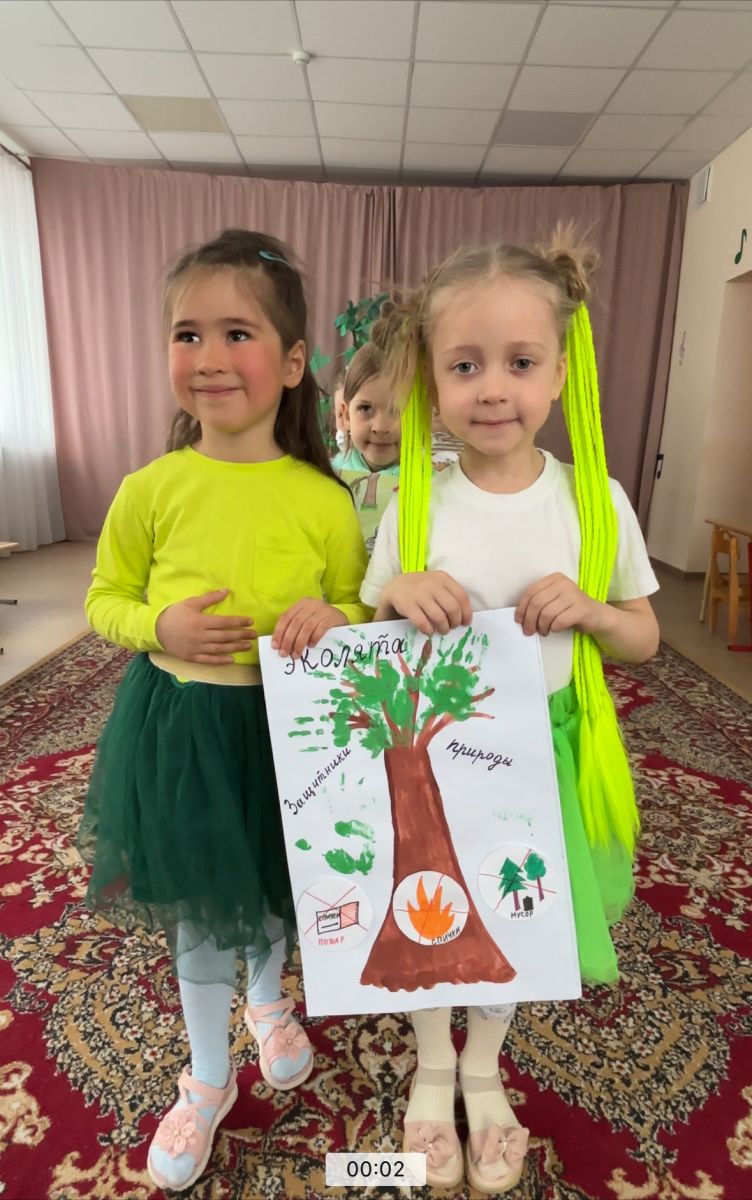Төркемнәрдә «табигатьтә үз — үзеңне тоту кагыйдәләре» дигән темага әңгәмәләр үткәрелде-балалар йөргәндә үзеңне ничек дөрес тотарга: шауламаска, ботакларны сындырмаска, чүп-чар калдырмаска кирәклеге турында фикер алыштылар.Әңгәмә барышында балалар дөрес җавап бирделәр — барысы да кул чабалар , ялгышсалар-бергәләп аяк тибәләр иде. Өлкән һәм мәктәпкә әзерлек төркемнәрендә тәрбиячеләр табигатьне саклау тематикасы буенча «Квест – яшь Эколятлар» интеллектуаль уены үткәрделәр. Тәрбияләнүчеләр Шалуннан уенда чүп-чарны сортларга өйрәнгәннәр, әйләнә-тирә дөнья турында белемнәрен акыллылардан киңәйткәннәр, үсемлекләрнең, бөҗәкләрнең һәм башка тереклек ияләренең тормыш циклын билгеләгәннәр. «Можно-нельзя» чыршысыннан блиц-викторинада, «Домики друзей наших меньших " Тихонидан блиц-сораштыруда катнаштылар
