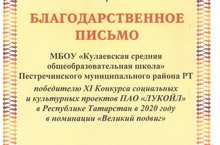 • МБОУ "Кулаевская средняя общеобразовательная школа" Пестречинского муниципального района Республики Татарстан /Татарстан Республикасы Питрәч муниципаль районы муниципаль бюджет гомуми белем учреждениесе «Колай урта гомуми белем мәктәбе»