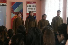 Выступление на школьной линейке "Города - герои". Мәктәп линейкасында 9 нчы сыйныф укучыларының "Герой шәһәрләр" темасына чыгышы 02.03.2015