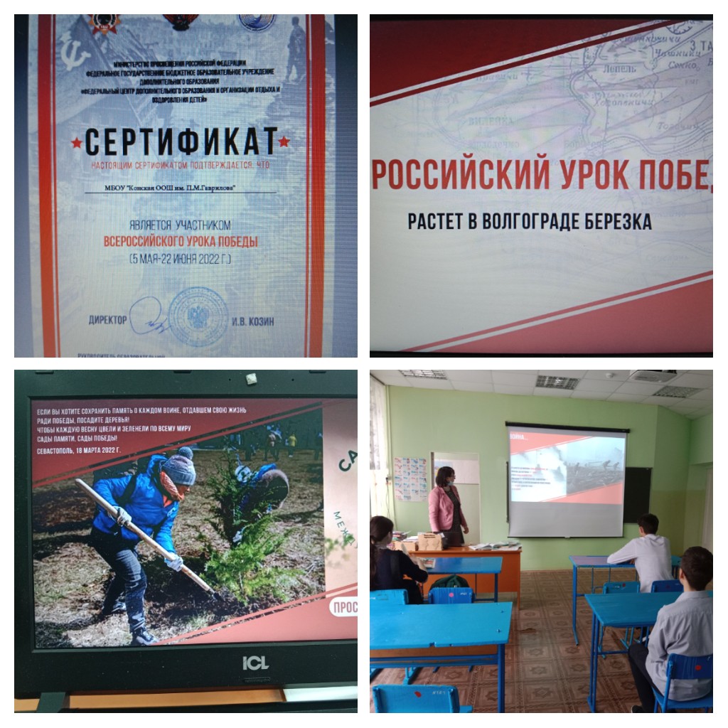 В рамках Всероссийской акции "Сад памяти" в школе провели Всероссийский урок Победы.