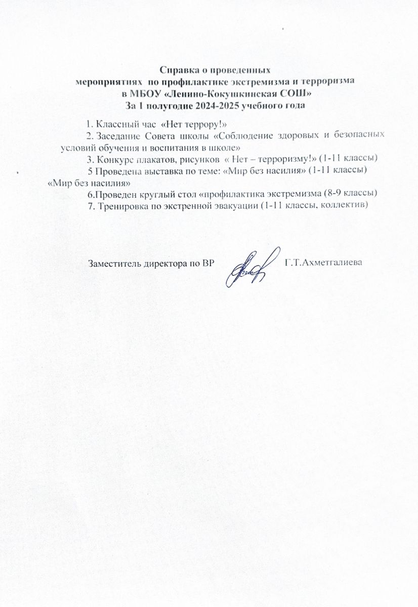 Справка о проведенных мероприятиях по антитеррористической защищенности