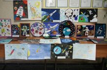 Выставка работ по итогам районного конкурса изобразительного и декоративно- прикладного творчества "Удивительный мир космоса", посвященного Дню космонавтики 12.04.2018