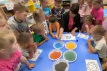 Бүген без балаларыбызга рәсемнәрне карандашлар һәм буяулар белән түгел , ә төсле ком белән буярга тәкъдим иттек.Бу гадәти булмаган һәм мавыктыргыч кына түгел, ә файдалы да! -