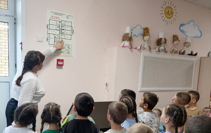 В ходе мероприятия проведены учебные эвакуации из здания детского сада, познавательные беседы. Дошколята совершили экскурсию по детскому саду, на которой познакомились с планом и с путями эвакуации детского сада, системой оповещения, средствами тушения пожара, с пожарной сигнализацией, установленной в детском саду.