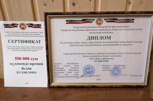 Диплом победителя республиканского конкурса "Лучший детский сад по организации обучения и воспитания детей на родном (татарском, чувашском, удмуртском, марийском, мордовском)языке//"Туган (татар, чуваш, удмурт, мари, мордва) телендә белем һәм тәрбия бирүне оештыра торган иң яхшы балалар бакчасы"республика бәйгесе җиңүчесе дипломы