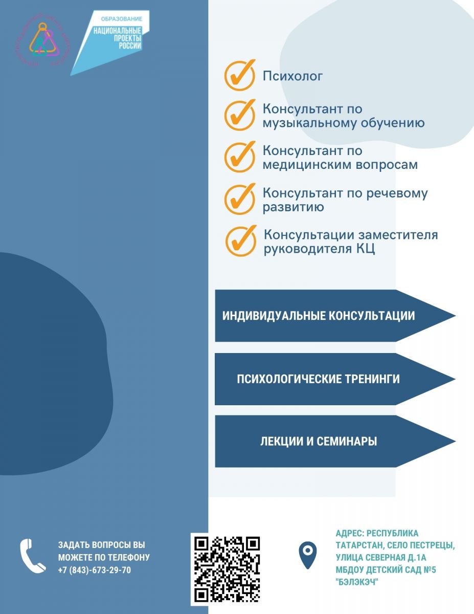 Консультанты: консультант по развитию речи, консультант по музыкальному обучению, психолог консультант, консультант по медицинским вопросам, консультант по методической помощи.