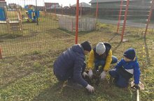 Посадка родителями и детьми деревьев и кустарников на прилегающей территории детского сада