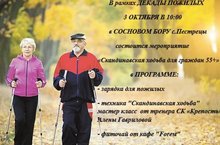 Приглашаем Вас Третьего октября в 10:00 в Сосновый бор, где состоится мероприятие, посвященное Дню пожилых людей «Скандинавская ходьба для граждан 55+», вас ждет увлекательный мастер-класс, зарядка для пожилых и фиточай.