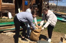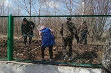 Помощь Ветерану ВОВ Денисову А.Н. в уборке территории дома. 06.05.2021