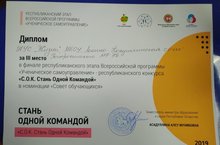 Школьное ученическое самоуправление "Жизнь"Ленино-Кокушкинской школы приняли участие в финале республиканского этапа Всероссийской программы "Ученическое самоуправление"-Республиканского конкурса "СОК.Стань Одной Командой" и заняли 3 место в номинации "Совет обучающихся".