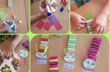 Конструирование из полос цветной бумаги, дети учились создавать образ гусеницы. Вот такие забавные гусенички получились у детей.