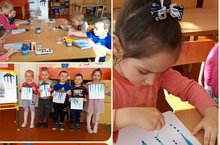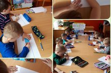 Фрагмент занятия по математике, продуктивная деятельность, дети учились изображать предмет, состоящий нескольких геометрических фигур, правильно их располагая. Развитие мелкой моторики. Закрепление знания о круге, треугольнике, о различии по величине.