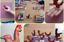 Лепка в младшей группе на тему: "Филимоновские игрушки- свистульки" Цель: познакомить детей с филимоновской игрушкой, как видом народного декоративно- прикладного искусства. Учить лепке петушка на основе цилиндра.