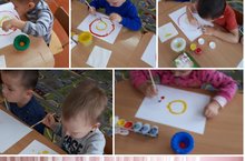 Рисование в младшей группе на тему"Разноцветные колеса". Формировали навык рисования предметов круглой формы слитным неотрывным движением кисти. Закрепляли представления детей о частях машины.