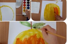 Яблочко румяное,Сочное медовое... Рисование в младшей группе. Учились рисовать предметы круглой формы. Закрепляли умение пользоваться красками, правильно держать кисть.