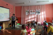Во исполнении постановления "Об информировании воспитанников детских садов и учеников школ о пожарной безопасности", в целях ознакомления детей с правилами и инструкциями поведения на пожаре, во избежании пожаров и соблюдении безопасности, путем проведения классных часов и занятий о правилах поведения при пожаре, в рамках детского сада был проведен тематический урок для воспитанников средней и старшей гупп, на тему :"Что такое огонь, откуда он появился и что нужно знать детям о безопасных правилах поведения, чтоб не случился пожар, что делать при возникновении пожара и какие средства тушения существуют.
