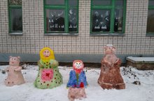 Наши Нвогодние поделки из снега, персонажи сказки : "Машенька и три медведя"